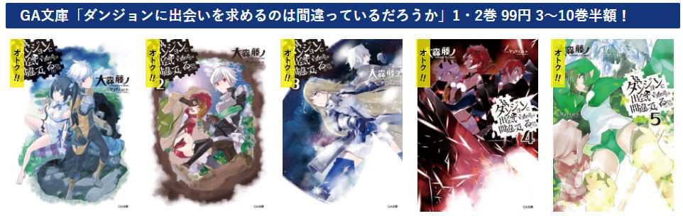 GA文庫「ダンジョンに出会いを求めるのは間違っているだろうか」1・2巻 99円 3~10巻半額!
